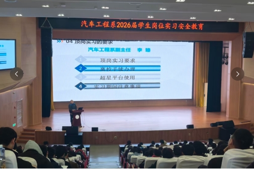 为切实保障毕业生安全、有序离校,增强毕业生安全防范意识,2025年11月27日汽车工程系在学院报告厅召开了毕业生离校前安全教育会。系领导班子、辅导员及全体毕业生参加了此次会议。
