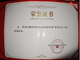 在他的带动下,班级学风愈发浓厚,凝聚力显著提升,最终成功斩获“优秀班集体”“五四红旗团支部” 两项荣誉,他也用自己的工作能力,将个人价值转化为了集体成长的动力。