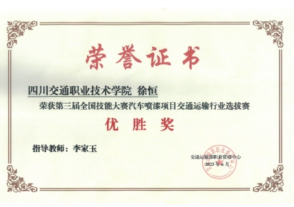 2025年6月2日至6日,第三届全国技能大赛汽车喷漆项目交通运输行业选拔赛在浙江杭州技师学院成功举办。我院汽车工程系新能源汽车检测与维修技术专业2024级学生徐恒在比赛中获优胜奖,学院获“优秀组织奖”。