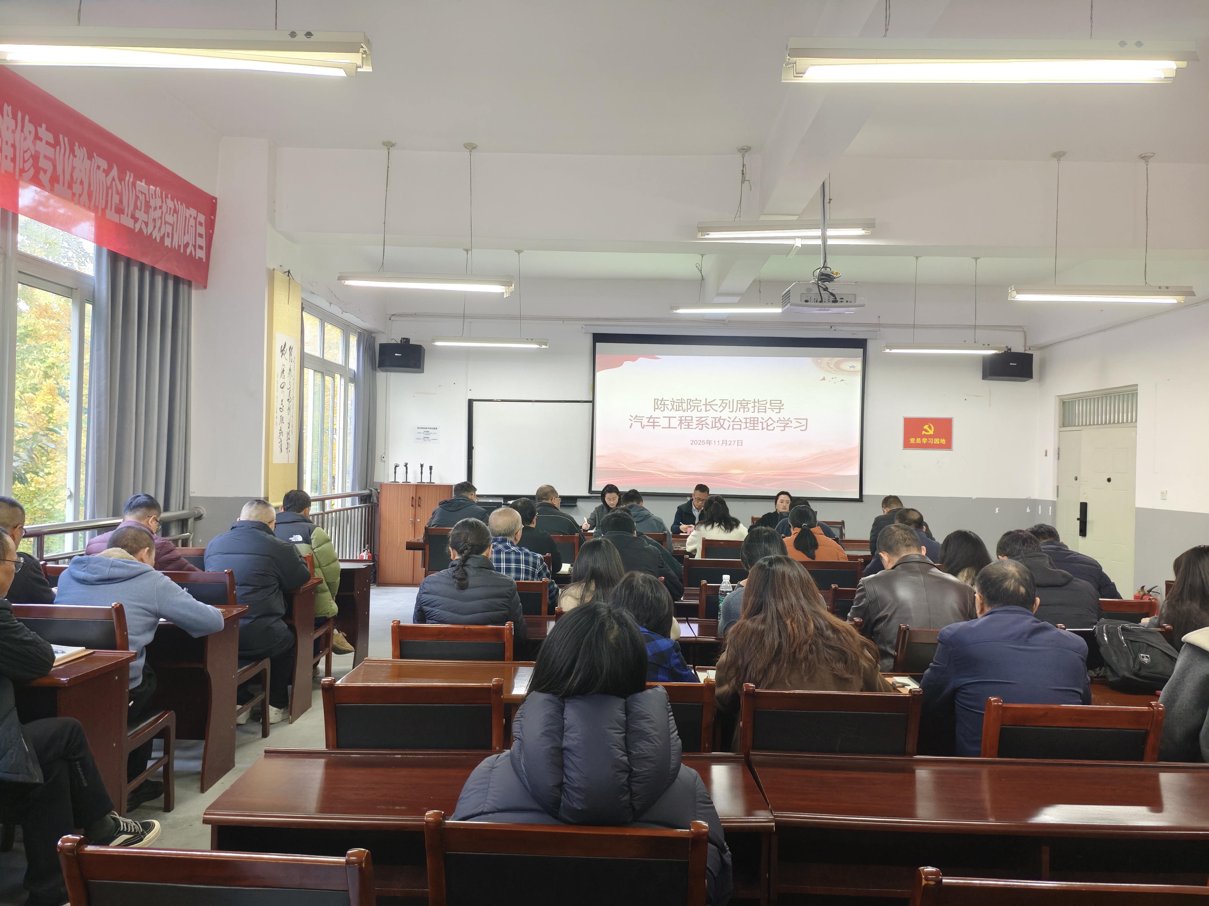 11月27日下午,汽车工程系党总支在践行楼A316组织召开全系政治理论学习会,深入学习贯彻党的二十届四中全会精神,学院党委委员、院长陈斌及党委行政办公室、组织人事处相关部门负责人、工作人员列席指导,全系党员和教职工参会。会议由系党总支书记周桃主持。