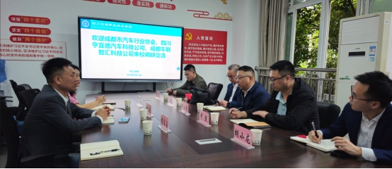 随后,双方在会议室开展座谈。邓小亮会长介绍了成都市汽车行业协会的职能及成都汽车产业蓬勃发展的现状与未来趋势。周旭主任系统阐述了汽车工程系的发展历程、“双师型”教学团队以及面向汽车后市场和汽车制造领域的人才培养体系。吴胜鸿董事长则重点介绍了亨宜德公司作为汽车易损件平台服务商的业务布局,并表达了对高素质技术技能人才的迫切需求。